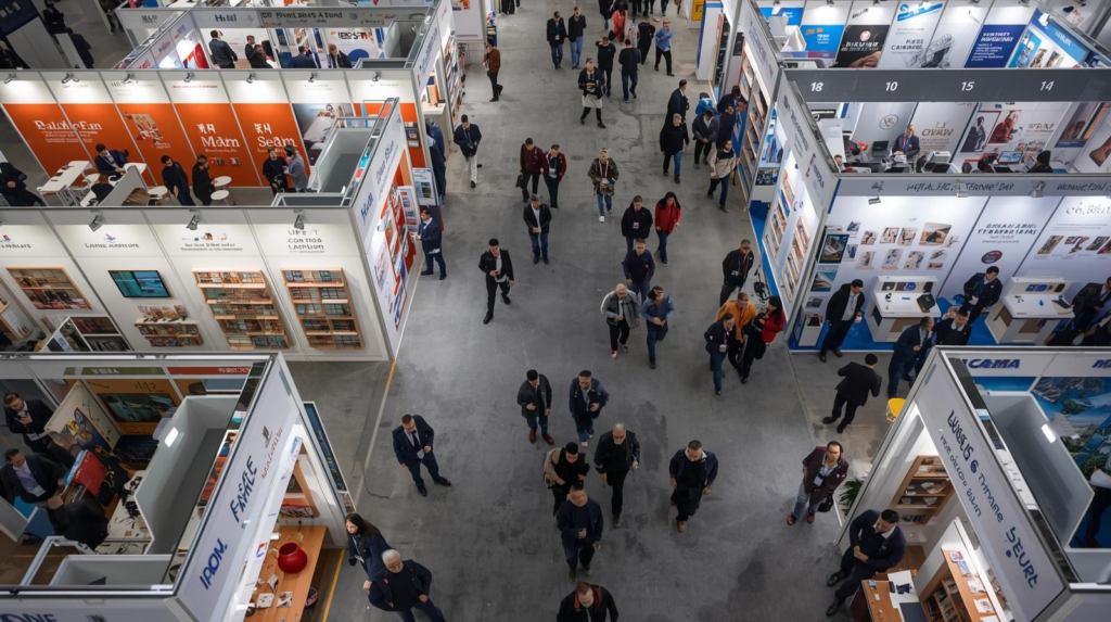 Booths located along main aisles typically receive higher foot traffic, as buyers naturally move along these routes.